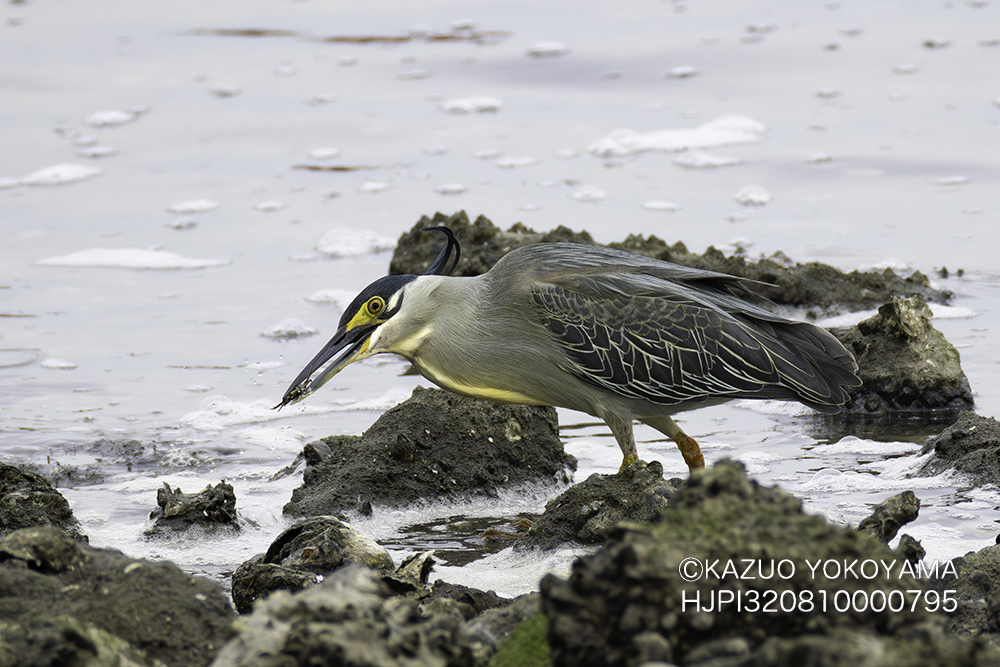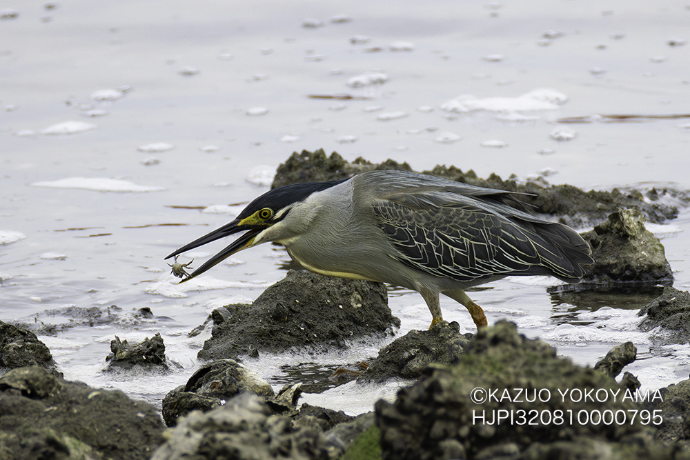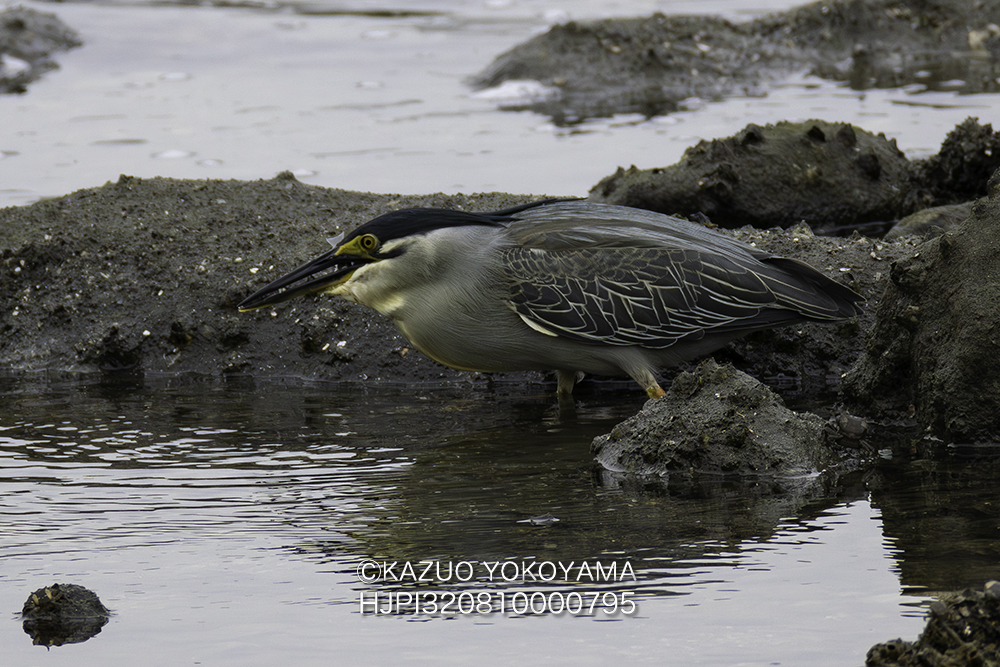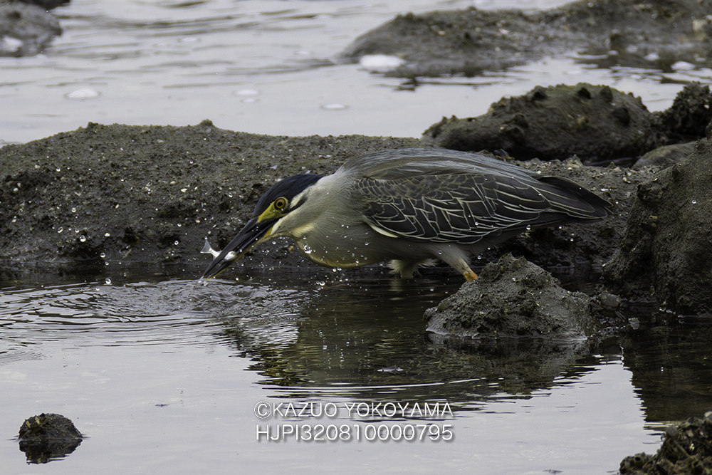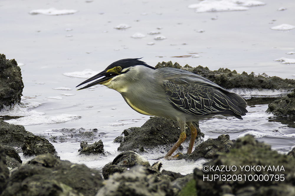 ゴイサギよりやや小さく嘴が長く虹彩は黄色。